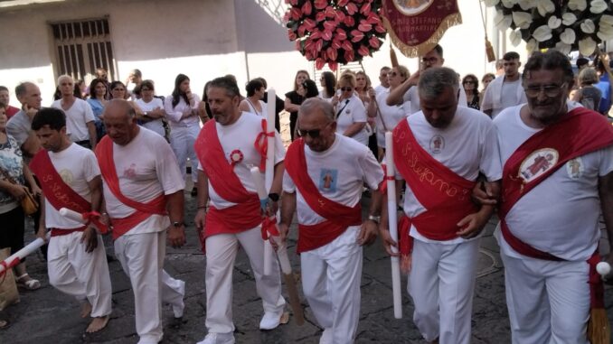 I battenti, con indosso caratteristici abiti tradizionali, hanno percorso le vie del centro storico portando con sé l’icona di Santo Stefano.