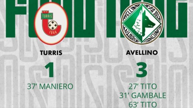 In attacco il tridente irpino è costituito da Trotta e Russo sulle fasce a sostegno di Gambale. L’inizio è da brividi per i biancoverdi, il tentativo di Vitiello dopo svirgolata di Leonetti è salvato sulla linea di porta da Auriletto. Al 17′ sbaglia Trotta, ne approfitta Leonetti che clamorosamente non riesce a centrare il bersaglio concludendo a lato. L’Avellino si sveglia al 23′, Russo per Trotta ma il suo tiro è neutralizzato di piede da Perina. L’ex Maniero controbatte, conclusione non lontana dall’incrocio dei pali. Al 27′ i lupi passano in vantaggio con un fendente di Tito dai 20 metri. I ragazzi di Rastelli sono su di giri e raddoppiano al 32′ con una zuccata di Gambale su servizio di Russo. La Turris non ci sta, ritorna in partita con Maniero, colpo di testa vincente da corner di Acquaro. Si va al riposo sull’1-2.