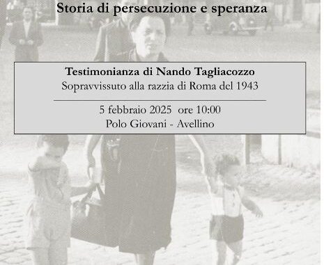 Porterà la sua testimonianza agli studenti dell’IC Aurigemma di Monteforte e dell’IC Calvario-Covotta di Ariano l’ingegnere Nando Tagliacozzo, tra i sopravvissuti al rastrellamento del ghetto di Roma nell’ottobre del 1943. Il 5 febbraio, alle 10, sarà ospite al Paolo Giovani di Avellino, di un incontro dal titolo “16 ottobre 1943. “Il destino su un pianerottolo”: storia di persecuzione e speranza”. Condividerà con gli alunni dei due istituti irpini, guidati dalla dirigente Filomena Colella, la sua esperienza, punto d’incontro tra la storia documentata e la memoria vissuta di chi ha subìto le discriminazioni imposte dal regime fascista. A partecipare all’incontro anche la professoressa Lori Cohen, membro della comunità ebraica di Napoli. Introdurrà l’incontro la dirigente scolastica Filomena Colella.