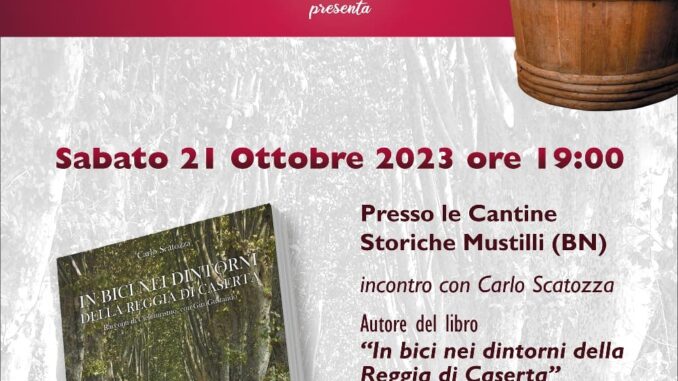 Il tour di presentazione del libro del giornalista casertano Carlo Scatozza “ In Bici nei dintorni della Reggia di Caserta, racconti di cicloturismo, con GiroGustando edito da Wood&Stein arriva nel Sannio grazie agli eventi proposti da Cantine Mustilli e dal Movimento Turismo del Vino della Campania. L’appuntamento è per Sabato 21 ottobre, con inizio alle 19.00 nei locali delle Cantine storiche Mustilli in Via dei Fiori a Sant’Agata dei Goti. Nell’appuntamento il focus principale sarà l’itinerario del Grande Giro dell’Acquedotto Carolino, raccontato tra i 17 itinerari/capitoli che compongono il volume. La discussione con l’autore vedrà la partecipazione del giornalista Sandro Tacinelli e il supporto di Leonardo Ancona funzionario Reggia di Caserta responsabile dell’ acquedotto carolino.