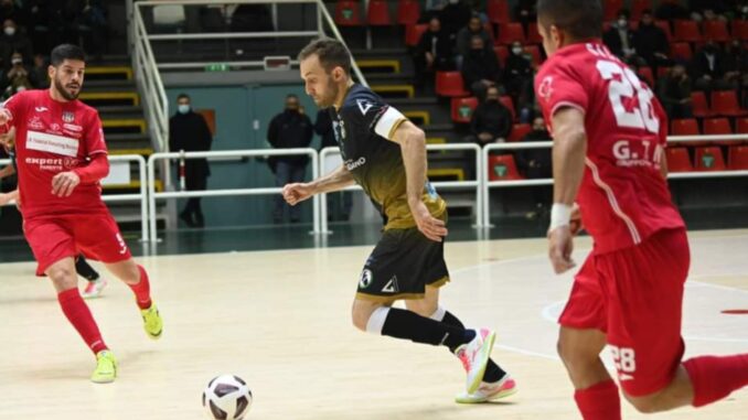 Sandro Abate tramortita dal Real San Giuseppe nel derby del DelMauro. I vesuviani vincono per 1-5, nella ripresa il match si rivolta come un calzino dopo un primo tempo appannaggio degli avellinesi. Infatti è Bellobuono a fare gli straordinari, si oppone in più di un paio di occasioni a Richar e Alex, inoltre i legni di Bizjak e Danicic. Lo squillo del Real San Giuseppe è di Patias, provvidenziale Avellino a mettere una pezza quando la palla stava per insaccarsi. Si rientra sul parquet ed è il portiere della Sandro Abate, Perez, a dover dire di no a Salas e Patias. I padroni di casa perdono colpi ed un errore di Alex viene punito da Patias che fulmina Perez incrociando alla perfezione. È il 10′. Gli irpini reagiscono con Dalcin, gli ospiti la scampano e al 12′ vanno sullo 0-2 con l’ex Crema. Altri 2′ ed è tris Real San Giuseppe, una rete da applausi che porta la firma di Patias, rovesciata a inchiodare Perez. La Sandro Abate non può che riversarsi in avanti per tentare il tutto per tutto, la situazione è disperata ma Salas chiude la contesa, si infila negli spazi lasciati liberi segnando lo 0-4. Il gol della bandiera per la Sandro Abate è di Richar, l’1-5 definitivo di Bellobuono.
