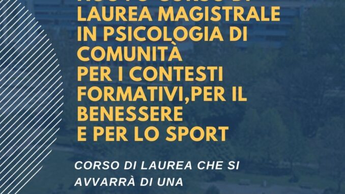 Il termine per l’iscrizione al Corso di Laurea Magistrale in Psicologia di Comunità per i Contesti Formativi, per il Benessere e per lo Sport, è fissato per il 2 Novembre 2021. Di seguito il link del bando per l’ammissione: