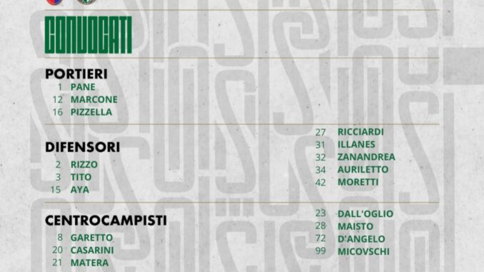 Difensori: 2 Rizzo, 3 Tito, 15 Aya, 27 Ricciardi, 31 Illanes, 32 Zanandrea, 34 Auriletto, 42 Moretti;