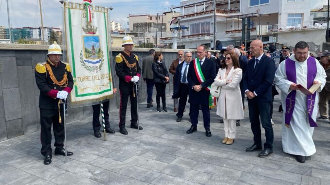 A scoprire la targa è stato il sindaco Luigi Mennella, accompagnato dal vicepresidente della commissione d’inchiesta della Camera dei Deputati Giorgio Fede, dalla vicepresidente del Consiglio Regionale della Campania Loredana Raia, dall’assessore comunale Laura Vitiello e dai familiari dei marittimi scomparsi. Presenti anche numerosi cittadini, stretti in un momento di forte emozione e memoria collettiva.