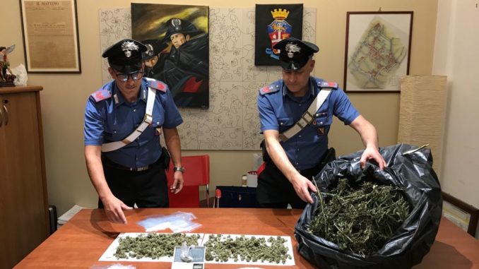 Nel corso di perquisizione nella sua abitazione i militari dell’arma l’hanno trovato in possesso di 165 grammi di marijuana in confezioni e di 20 piante di cannabis indica. Trovato e sequestrato anche un bilancino elettronico di precisione e materiale vario per il confezionamento.
