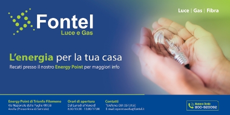 Nuova apertura ad Avella di un ENERGY POINT “FONTEL” di Filomeno Trionfo. Fontel S.p.A. è una delle aziende leader in Campania,offre servizi di luce e gas (per casa e aziende) con una politica di estrema attenzione all’innovazione tecnologica, all’aggiornamento dei sistemi ed alle esigenze di ogni singolo cliente. Fontel diventa un importante punto di riferimento in tutto il Sud Italia nell’ambito del libero mercato dell’energia. Fontel si propone come la prima multiutility del meridione, offrendo ai propri clienti soluzioni personalizzate e un’assistenza diretta e accurata. Grazie ad un un efficace servizio di consulenza in Fontel ogni cliente può orientarsi al meglio fra le numerose offerte ed effettuare la scelta più appropriata in base alle sue peculiari necessità.L’Energy Point di Filomeno Trionfo si trova in Via Nazionale Delle Puglie, Km58- Avella (Interno area di servizio Km58- ex Mambo Cafe’).