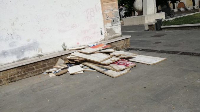 IL CITTADINO SEGNALA – AVELLA.Pannelli abbandonati in Piazza Convento,interviene la Protezione Civile. FOTO