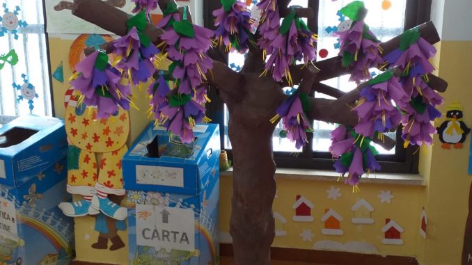In particolare, i bambini, grazie all’entusiasmo delle maestre erano stati coinvolti in un percorso di conoscenza di questo albero speciale e generoso, anche attraverso la predisposizione partecipata di una sua riproduzione – bellissima – in cartone colorato. Inoltre, avevano anche messo a punto la cosiddetta “Promessa all’Albero”, una sorta di impegno collettivo ad accudirlo. Insomma i bambini avevano ben compreso che gli esseri viventi dalla testa verde sono veramente dei supereroi.