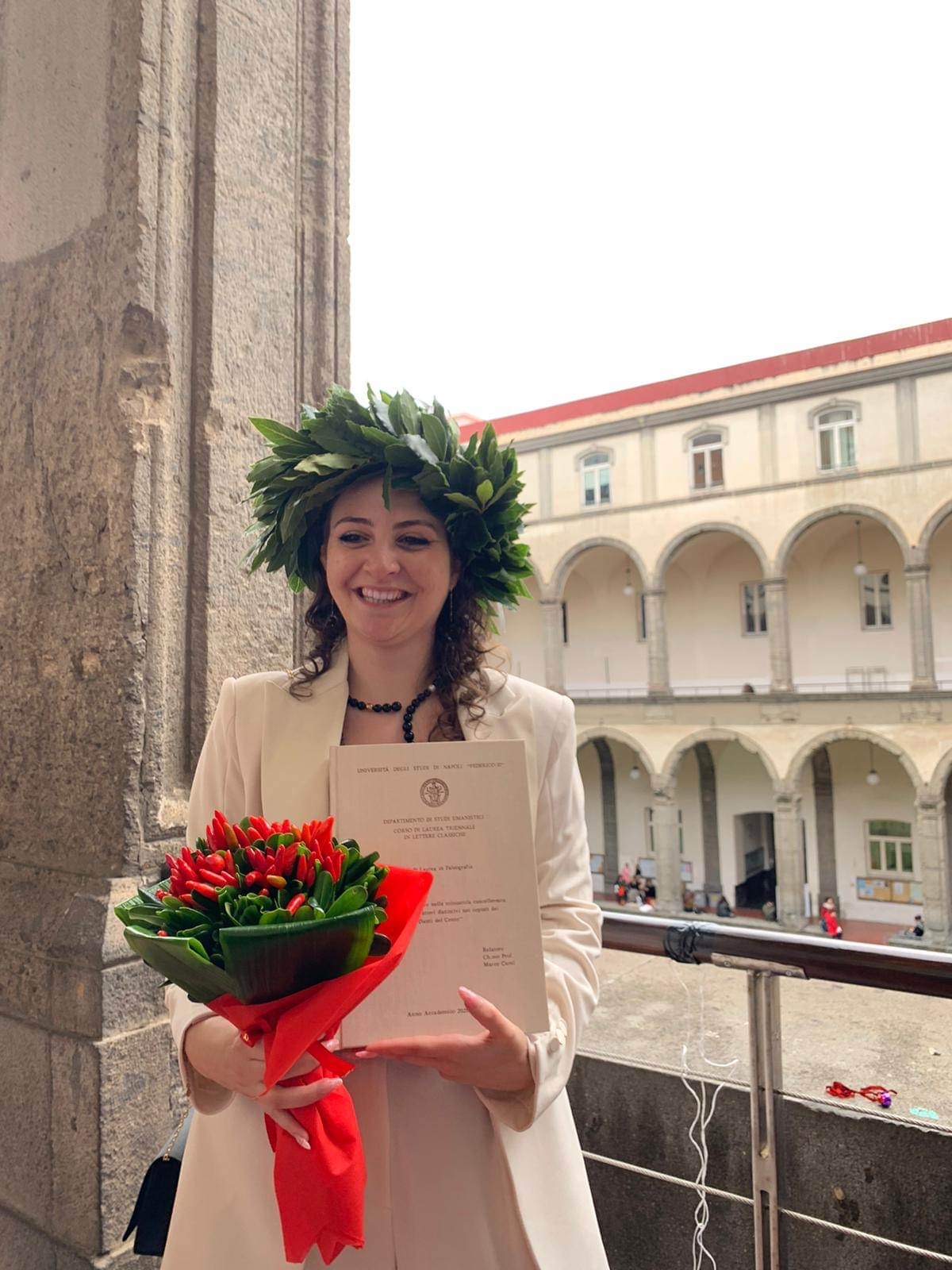 Ha conseguito la laurea in Lettere Classiche Giovanna Festa presso L’Universitá Federico II di Napoli discutendo la tesi di laurea in Paleografia su “Le maiuscole distintive nella minuscola cancelleresca: morfologia e caratteri distintivi nei copisti dei < Danti del Cento>”.