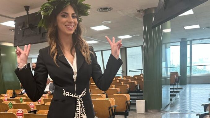 Ha conseguito la laurea in Giurisprudenza presso la prestigiosa università Federico II di Napoli per Rossella Carbone. Gli auguri speciali sono del promesso sposo Angieri Gabriele, architetto, e da Nicola Le Donne dir. art. del teatro Biancardi.