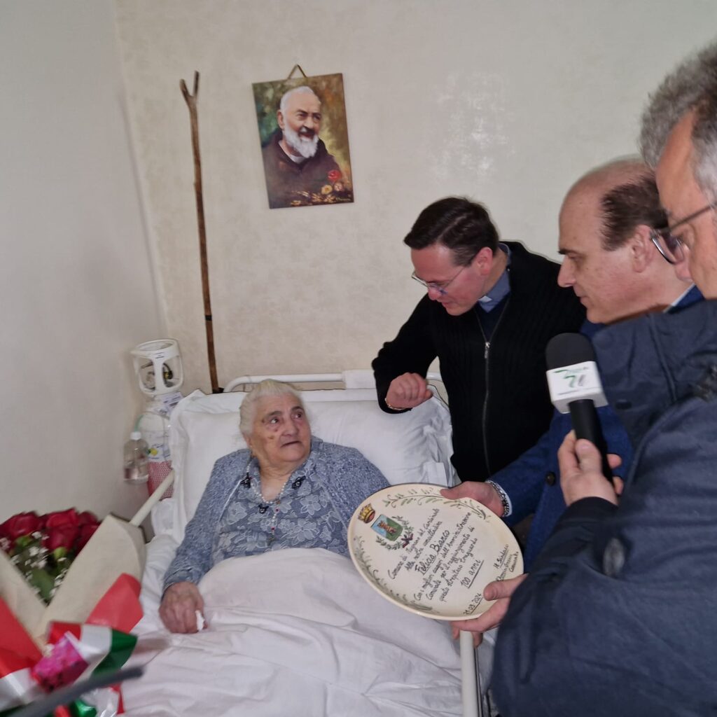 Oggi, circondata dall’affetto dei suoi figli, nipoti e pronipoti, Felicia Bianco ha ricevuto gli omaggi della comunità mugnanese. Il parroco don Giuseppe Autorino le ha donato un rosario di Santa Filomena, simbolo di fede e di protezione, mentre il sindaco Alessandro Napolitano le ha consegnato un mazzo di rose rosse e un piatto con gli auguri della comunità, testimoniando così l’affetto e la stima di tutti i concittadini.