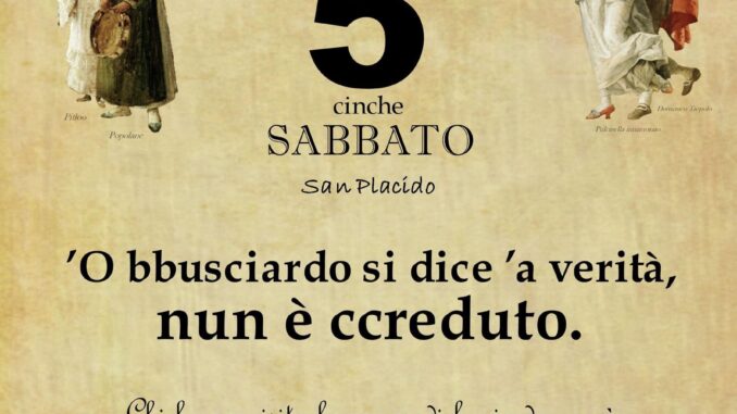 ‘O PRUVERBIO D’ ‘O JUORNO. Sabato 5 ottobre 2024 05/10/2024 binews.it 100 DI QUESTI GIORNI, ATTUALITA', EVIDENZA, Il Proverbio del Giorno 0 di Gianni Polverino ’O bbusciardo si dice ’a verità, nun è ccreduto. Chi ha acquisito la nomea di bugiardo non è più creduto da nessuno anche se dicesse la verità.