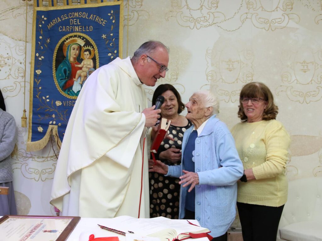 La Signora Pasqualina Piscitelli di Visciano compie oggi 100 anni. Grande Festa con il Parroco Padre Domenico La Manna e il sindaco Sabatino Trinchese con alcuni membri dell’amministrazione e tutta la famiglia e la comunità . Auguroni alla Signora Pasqualina da tutta la redazione di Binews.
