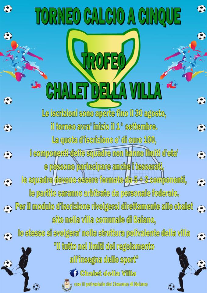 Baiano, aperte le iscrizioni per il trofeo “Chalet della villa”.