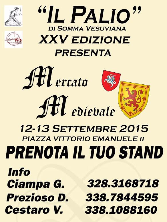 SOMMA VESUVIANA. Un mercatino medievale ricco di prodotti tipici locali ed artigianali che ha lo scopo di finanziare un importante progetto solidale. E’ l’iniziativa messa in campo per l’edizione speciale 2015 del Palio della città […]