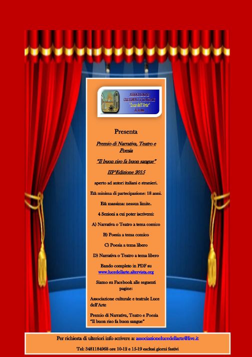 3^ edizione premio letterario e teatrale “IL BUON RISO FA BUON SANGUE”. Ecco come partecipare.