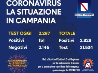 L’Unità di Crisi della Regione Campania comunica che sono pervenuti i seguenti dati: – Ospedale Cotugno di Napoli: sono stati esaminati 485 tamponi di cui 27 positivi; – Ospedale Ruggi di Salerno: sono stati esaminati […]