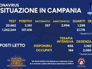 È deceduto questo pomeriggio, nella terapia intensiva del Covid Hospital dell’Azienda ospedaliera San Giuseppe Moscati di Avellino, un 55enne di Montoro. L’uomo era stato trasportato al Pronto soccorso della Città ospedaliera il 30 ottobre. Risultato positivo al […]