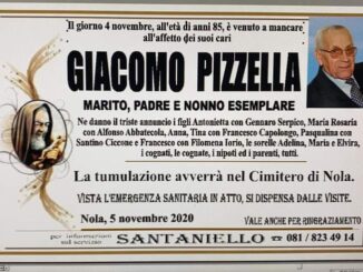 Esprimiamo il nostro cordoglio all’arch. Francesco Pizzella, consigliere comunale a Nola e a tutta la famiglia per la perdita del caro padre.