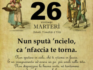 di Gianni Polverino Nun sputà ’ncielo, ca ’nfaccia te torna. Non sputare in cielo, ché ti ritorna in faccia. È un insegnamento ad essere un po’ più umili nella vita. Non disprezzare la buona sorte, […]