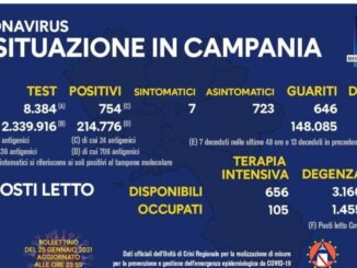 Questo il bollettino di oggi: Positivi del giorno: 754 (di cui 24 casi identificati da test antigenici rapidi) di cui Asintomatici: 723 Sintomatici: 7 * Sintomatici e Asintomatici si riferiscono ai soli positivi al tampone […]