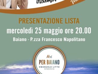 Dopo l’uscita della lista “Baiano Civica” del sindaco uscente Enrico Montanaro, sarà la volta della lista “Noi con Baiano” ad aprile la campagna elettorale con il primo comizio in piazza Napolitano. Mercoledì 25 maggio alle […]