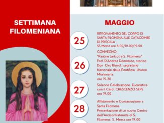 Il 25 maggio 1802, esattamente 220 anni orsono, nelle Catacombe di Priscilla a Roma, sulla via Salaria, fu ritrovato il Sacro Corpo di Santa Filomena. Monsignor Giacinto Ponzetti custode delle sacre reliquie, presente all’apertura della […]