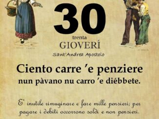 di Gianni Polverino Ciento carre ’e penziere nun pàvano nu carro ’e diébbete. E‘ inutile rimuginare e fare mille pensieri; per pagare i debiti occorrono soldi e non pensieri.
