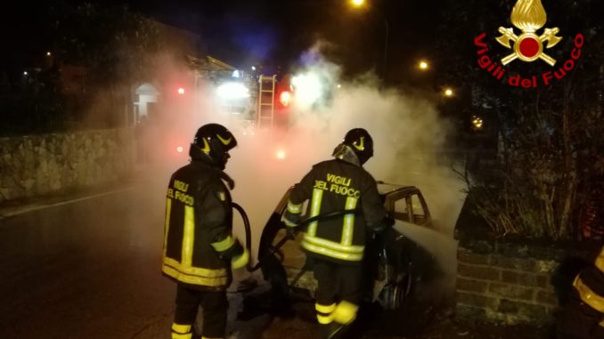 A fuoco veicolo ad Ariano Irpino, intervengono i caschi rossi. Foto