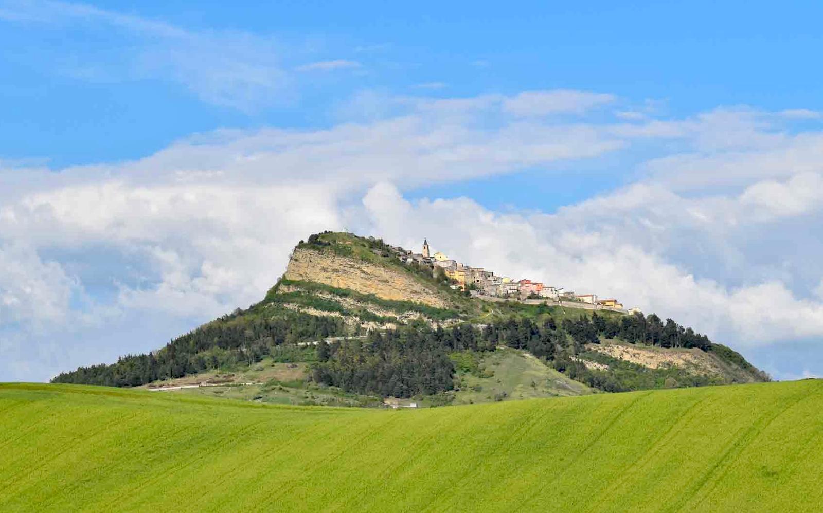 Il borgo si sviluppa in salita, tra vicoli stretti e case in pietra che sembrano sfidare la gravità. Dai suoi belvedere lo sguardo si perde in un paesaggio morbido e incontaminato: colline, boschi, campi, silenzi. È facile capire perché, per secoli, questo piccolo centro sia stato un punto di riferimento. Non solo per la posizione strategica, ma per la sua anima profonda. Non è un caso che proprio sulla Collina del Calvario siano stati rinvenuti reperti dell’Età del Ferro, segni di una presenza umana antichissima, fatta di pastori, artigiani, viandanti.