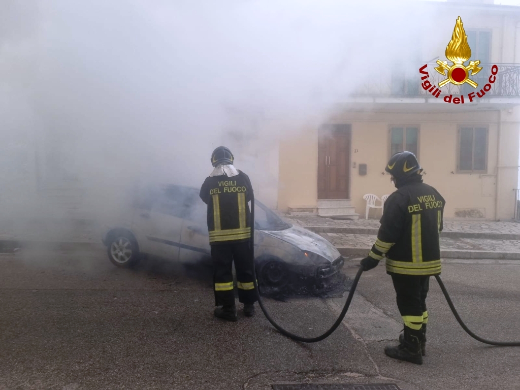 Calitri, auto in fiamme in via Ferrovia: intervengono i Vigili del Fuoco di Bisaccia