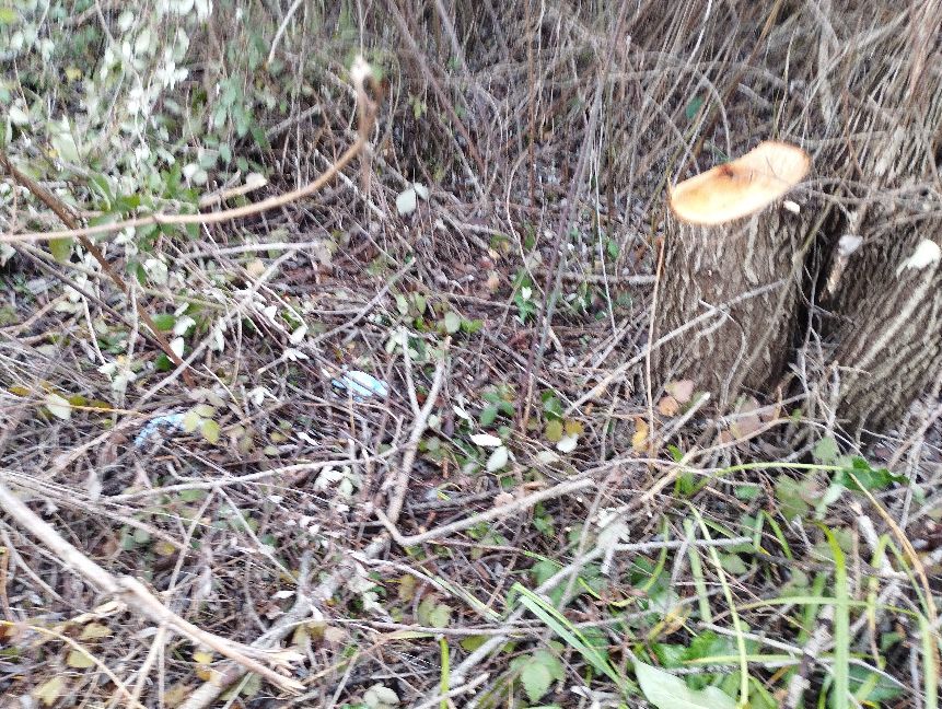 Inoltre, si notano alberi del demanio in vari punti tagliati di recente per fare legna. Un vasto campo arato trattato con diserbante, che partendo dalla strada interpoderale a servizio dei pozzi del Consorzio di Bonifica dell’ Ufita, raggiunge la sponda del fiume.