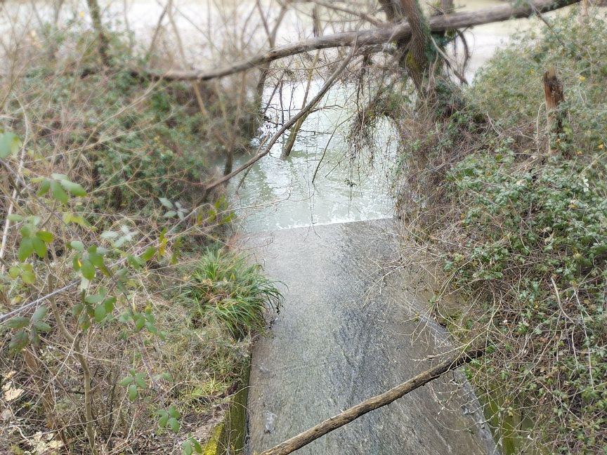 E per finire, abbiamo notato lo sversamento di acque saponate provenienti dal depuratore ASI, che si univano alla piena ancora in atto, del fiume Ufita. La confluenza è un’area quasi inaccessibile a causa di siepi e cespugli di spine, per cui non controllabile ad occhio umano.