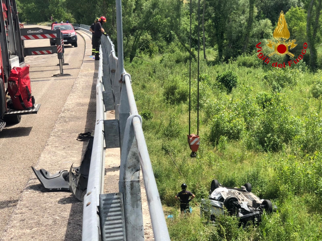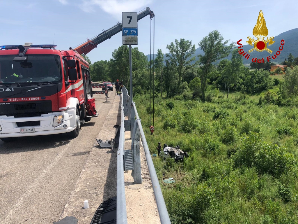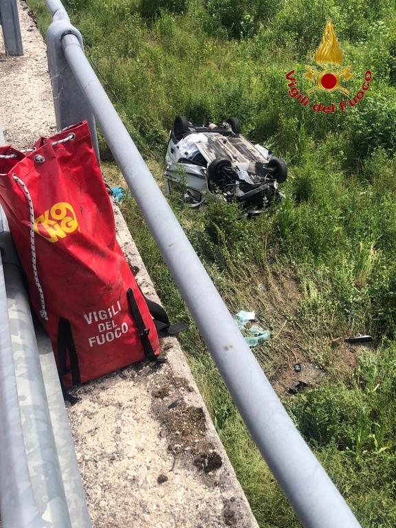 La squadra dei Vigili del Fuoco del distaccamento di Lioni, subito dopo le ore 12’00 di oggi tre giugno, è intervenuta a Sant’Angelo Dei Lombardi, sulla SP 279 al Km. 7, proprio al confine con Lioni, per un incidente stradale che ha visto coinvolto un furgone, il quale è sbandato precipitando per circa 10 metri l di sotto di un cavalcavia, ribaltandosi. Alla guida un uomo di 33 anni originario di Contrada, rimasto incastrato nell’abitacolo, e dopo averlo liberato è stato riportato sulla strada affidandolo alle cure dei sanitari del 118 intervenuti, i quali facevano arrivare un’eliambulanza atterrata sulla Provinciale, e che ha trasportato il malcapitato presso il campo CONI di Avellino, dove una squadra, sempre dei Vigili del Fuoco di Avellino, ha fatto assistenza al velivolo in fase di atterraggio e decollo. Da qui è stato trasportato presso l’ospedale Moscati di Avellino per essere sottoposto a cure mediche. Per il recupero dell’auto si è reso necessario l’intervento dell’autogru dalla sede centrale.