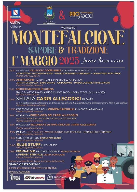 Montefalcione (AV) si prepara a vivere una giornata speciale in occasione della Festa del Lavoro. Il Comune di Montefalcione, in collaborazione con la Pro Loco “Emilio Ruggiero”, organizza per il 1° maggio 2025 l’atteso appuntamento “Montefalcione – Sapore e Tradizione”, un evento che affonda le sue radici nella memoria collettiva del paese e celebra con entusiasmo le sue radici popolari.