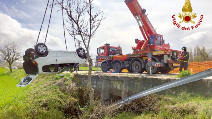 Durante la mattinata di oggi 22 aprile, i Vigili del Fuoco di Avellino sono stati impegnati in un intervento di soccorso per altrettanti incidenti stradali. Il soccorso è stato effettuato dalla squadra del distaccamento di Montella subito dopo le ore 09’00, nel territorio del comune di Sant’Angelo Dei Lombardi in contrada San Guglielmo sulla SP 154, dove un’autovettura è sbandata precipitando al di sotto un cavalcavia in un canale di scolo, ribaltandosi. A bordo dell’auto una ragazza di 29 anni originaria di Nusco, rimasta bloccata nell’abitacolo. Fortunatamente dei ragazzi di passaggio hanno visto la scena e dopo aver chiamato i soccorsi hanno provvidenzialmente estratto la malcapitata, appena in tempo in quanto l’abitacolo si stava per riempire d’acqua, trasportandola al vicino ospedale di sant’Angelo Dei Lombardi dove è stata sottoposta a cure mediche da parte del personale sanitario. Il veicolo è stato messo in sicurezza e pei il suo recupero si è reso necessario l’intervento dell’autogru dalla sede centrale di Avellino.