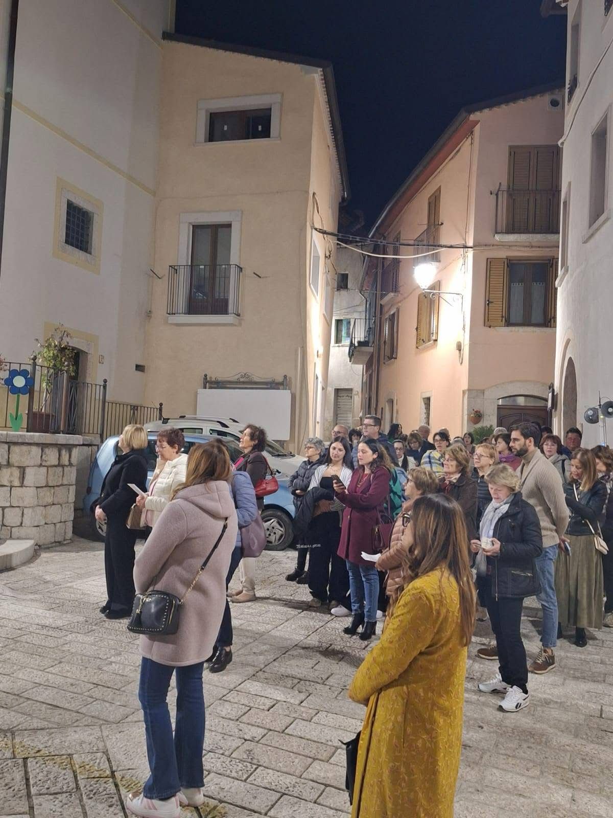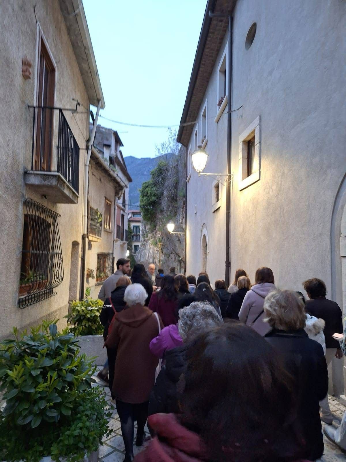 A seguire, si è svolta la Via Crucis itinerante, che ha attraversato le suggestive vie del centro storico del borgo. Le stazioni, vissute in silenzio e meditazione, hanno rappresentato un autentico cammino spirituale nel cuore della cittadina, accompagnando simbolicamente i passi di Cristo verso il Calvario.