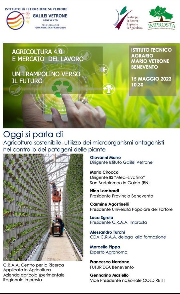 Si torna al dialogo all’Istituto Agrario “Galilei-Vetrone”, il 15 maggio, si parla di agricoltura sostenibile e dell’utilizzo dei microorganismi antagonisti nel controllo dei patogeni delle piante.