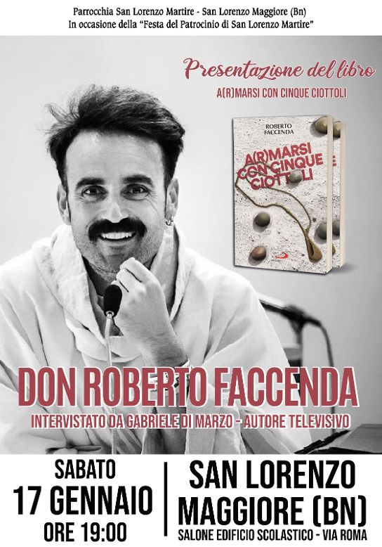 In questo contesto si inserisce l’appuntamento in programma sabato 17 gennaio, promosso dalla Parrocchia San Lorenzo Martire in occasione della Festa del Patrocinio di San Lorenzo Martire: la presentazione del libro “A(r)marsi con cinque ciottoli” di Roberto Faccenda (Edizioni San Paolo, 2025).