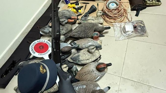 Approfittando delle condizioni favorevoli, l’uomo era riuscito ad abbattere tre esemplari di alzavola. I militari lo hanno bloccato e hanno proceduto al sequestro di un fucile semiautomatico Benelli M1 Super 90, di 108 cartucce calibro 12, dei richiami vietati e dei tre animali uccisi.