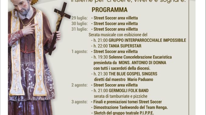 È stato definito il programma dei festeggiamenti patronali in onore di Sant’Alfonso Maria de’ Liguori, patrono della frazione di Cancello Scalo. La Locale Parrocchia in collaborazione con l’associazione Viviamo Cancello ha programmato un ricco calendario di eventi dal 29 luglio al 5 agosto prossimo.