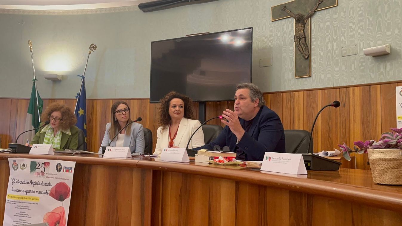 «Il 25 Aprile non è una stanca celebrazione della memoria ma è la capacità, il luogo, la consacrazione dei luoghi che devono rinnovare la memoria». Così Franco Vittoria, Docente di Storia delle Istituzioni Politiche dell’Università Federico II di Napoli, a chiusura del convegno “Gli internati in Irpinia durante la Seconda guerra mondiale” promosso dall’Amministrazione comunale in occasione dell’80° anniversario della Liberazione dell’Italia dal nazi-fascismo.