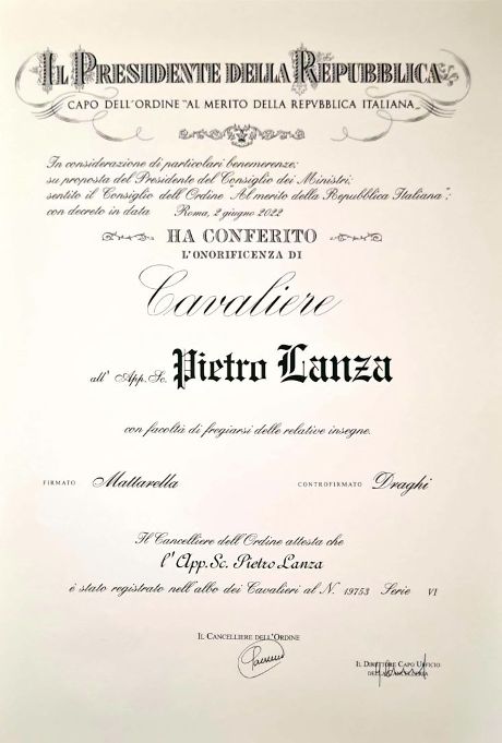 «Grottaminarda è fiera dell’alta onorificenza conferita ad un proprio cittadino dal Presidente della Repubblica e si congratula con il Cavalier Pietro Lanza».