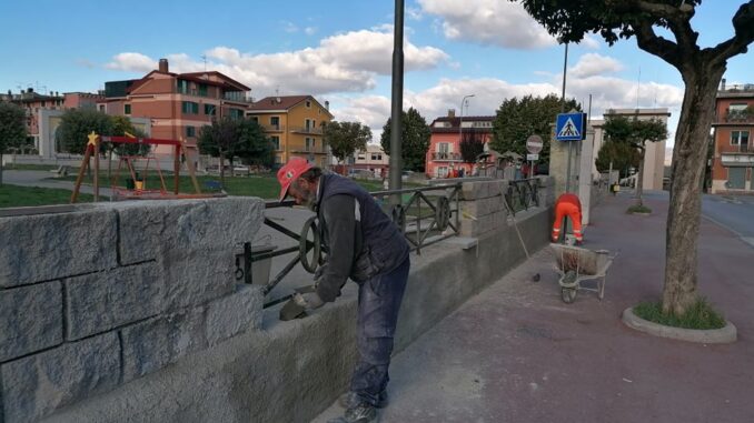 Nei Giardini De Curtis già da qualche giorno si sta intervenendo per ripristinare e dare maggior decoro ai muretti di recinzione. Si proseguirà con la messa in sicurezza e sostituzione con un’inferriata, del tratto rovinati della staccionata in legno lungo via Sturzo. I cordoli in cemento, a bordura delle aiuole interne, saranno del tutto rimossi poiché ritenuti poco sicuri.