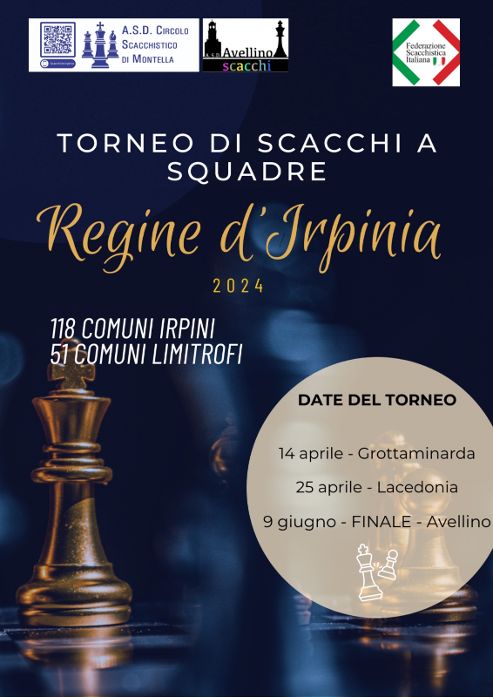 Grottaminarda è pronta ad ospitare per il secondo anno consecutivo il Campionato amatoriale di Scacchi a Squadre Regine d’Irpinia 2024, organizzato dall’ADS Avellino Scacchi in collaborazione con l’ASD Circolo Scacchistico di Montella.