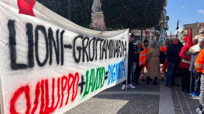 Presenti alla mobilitazione numerosi operai in cassa integrazione, alcuni di loro hanno rispolverato un vecchio striscione “ Lioni-Grottaminarda: sviluppo + lavoro = dignità” striscione che è stato necessario, purtroppo, utilizzare già in altre occasioni come nel 2018, perchè la storia di questa strada