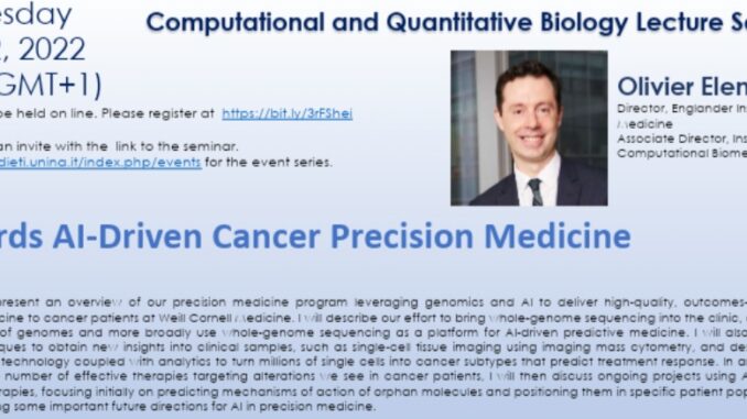 Olivier Elemento, invitato al prossimo seminario di biologia
