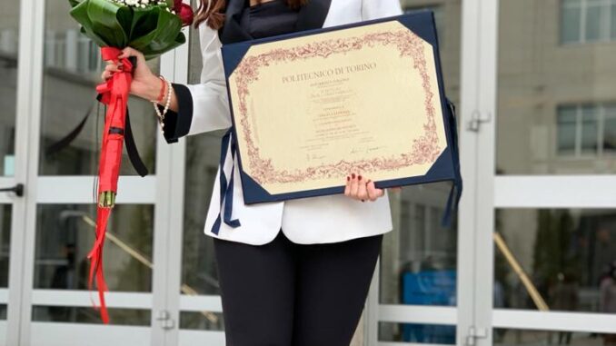 Presso il Politecnico di Torino ha conseguito la laurea magistrale in ingegneria biomedica con specializzazione nelle bio nanotecnologie la dottoressa Angela Ferrara con un lavoro di tesi sperimentale sulla ricerca assistita di nuovi farmaci per la cura delle Leucemie. Congratulazioni per il prestigioso traguardo raggiunto da papà Michele, dalla mamma Filomena, dalla sorella Teresa e gli zii Teresa e Daniele.