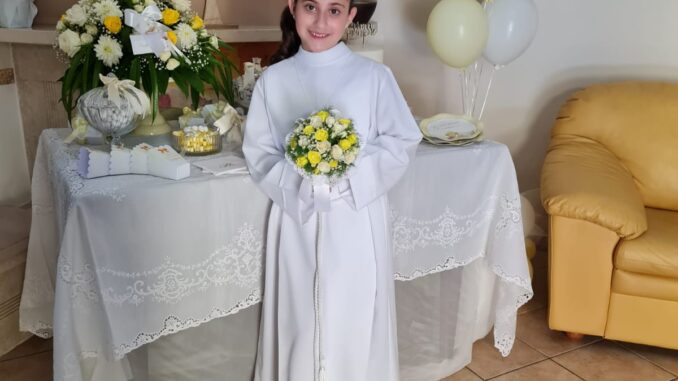 Un giorno speciale per la piccola Raffaela Acierno che oggi riceverà la prima comunione nella parrocchia dell’ Ascensione di Mugnano del Cardinale. Gli auguri giungono da mamma papa fratello nonni e zii.100 DI QUESTI GIORNI. Mugnano del Cardinale, Prima Comunione per Raffaela Acierno