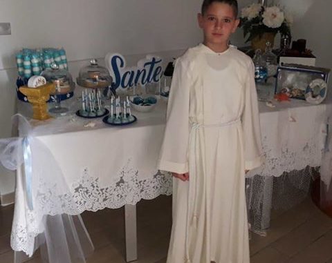 100 DI QUESTI GIORNI. Sperone, Sante D’Apolito riceve il sacramento della Comunione 16/06/2019 binews.it 100 DI QUESTI GIORNI, ATTUALITA', SPERONE 0 Prima Comunione, oggi domenica 16 giugno, per il piccolo Sante D’Apolito di Sperone. Gli auguri speciali dalle zie Marianna e Alessia e dagli zii e cugini.
